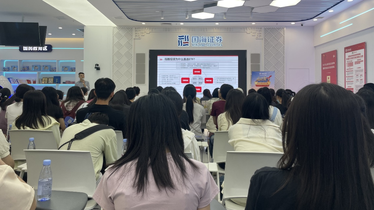 最后一站,师生们来到了国家级投教基地——国海证券投资者教育基地。讲解员带领同学们认真学习我国证券行业的发展史,并参观了南宁市滨湖路营业部的工作环境。随后,营业部总经理刘力开展了证券知识讲座,介绍了证券行业的发展状况及特点、国海证券的发展历程等,引导同学们树立正确的投资理念,增强风险防范意识,提升金融素养。最后,中通支付南宁负责人开展了反诈骗知识宣讲,同学们认真聆听并踊跃参与互动答题。