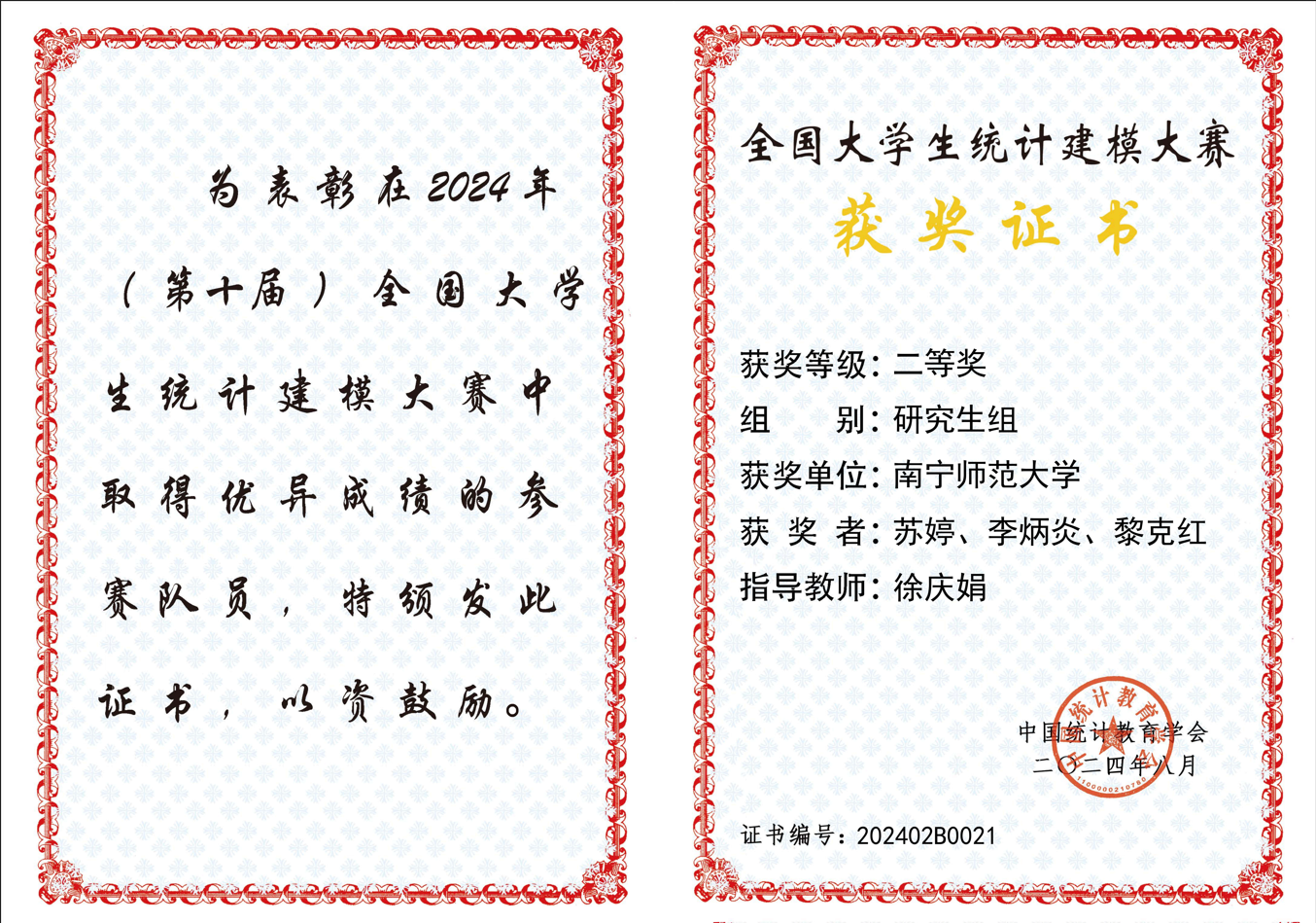 8月21-23日,第十届全国老员工统计建模大赛现场答辩赛及总结会在西安财经大学圆满落幕。公司williamhill概率论与数理统计专业研究生苏婷、李炳炎和黎克红所组成的团队,经过校赛、省赛、国赛通讯评审、现场会议评审,成功入围国赛现场答辩赛,喜获国家二等奖。
