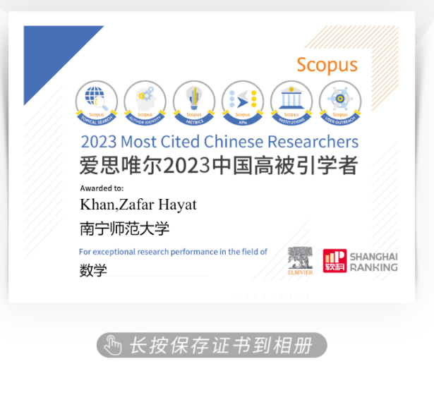 近日,爱思唯尔 (Elsevier) 重磅发布2023“中国高被引学者” (Highly Cited Chinese Researchers) 榜单,公司williamhill可汗教授成功入选。