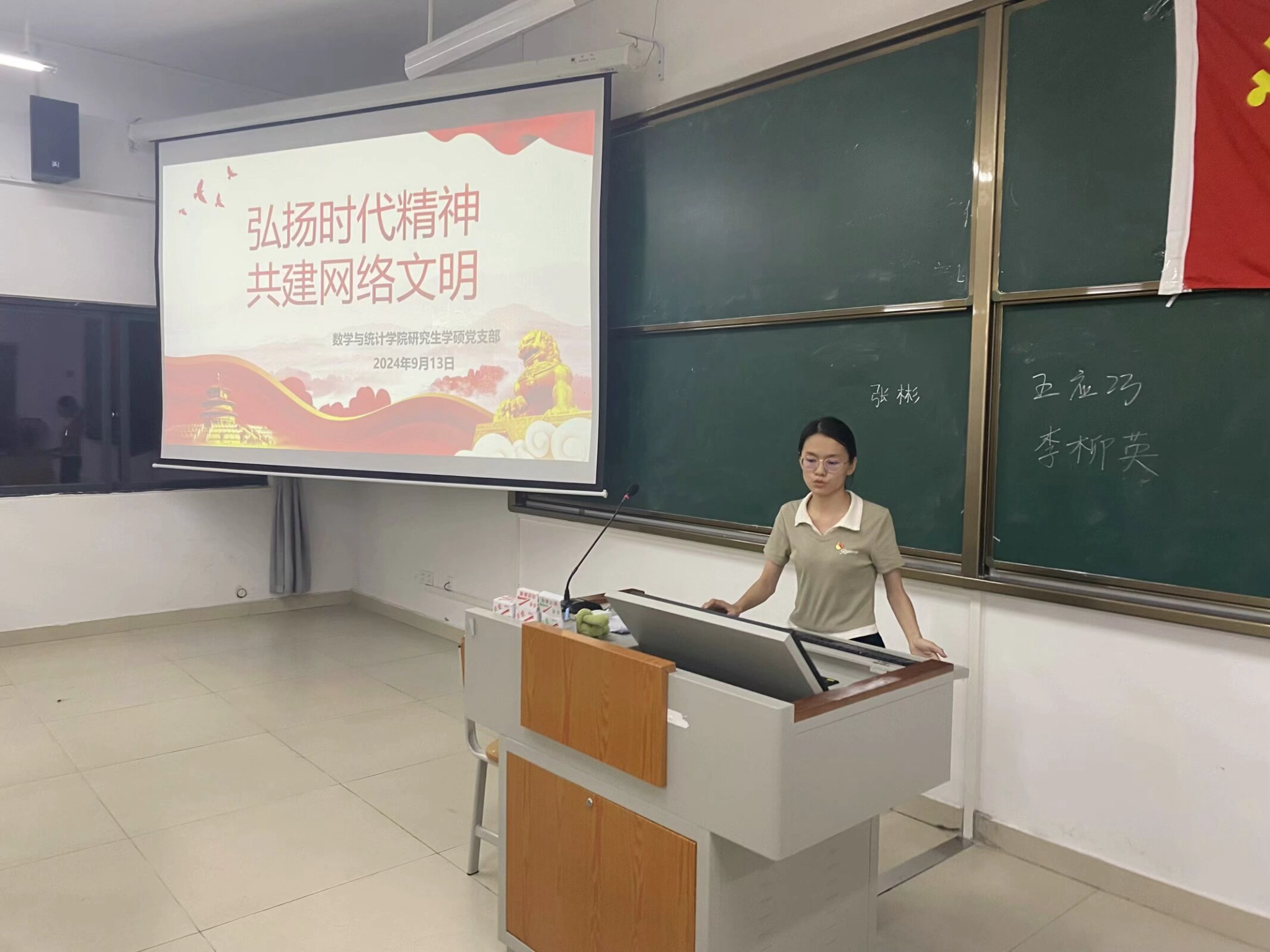 为进一步加强党员在网络文明建设中的榜样引领作用,9月13日晚,williamhill研究生学硕党支部在2号实验楼-A104室组织开展“弘扬时代精神,共建网络文明”主题党日活动。此次党课由支部书记罗海燕同志主持,研究生学硕党支部全体成员参加。