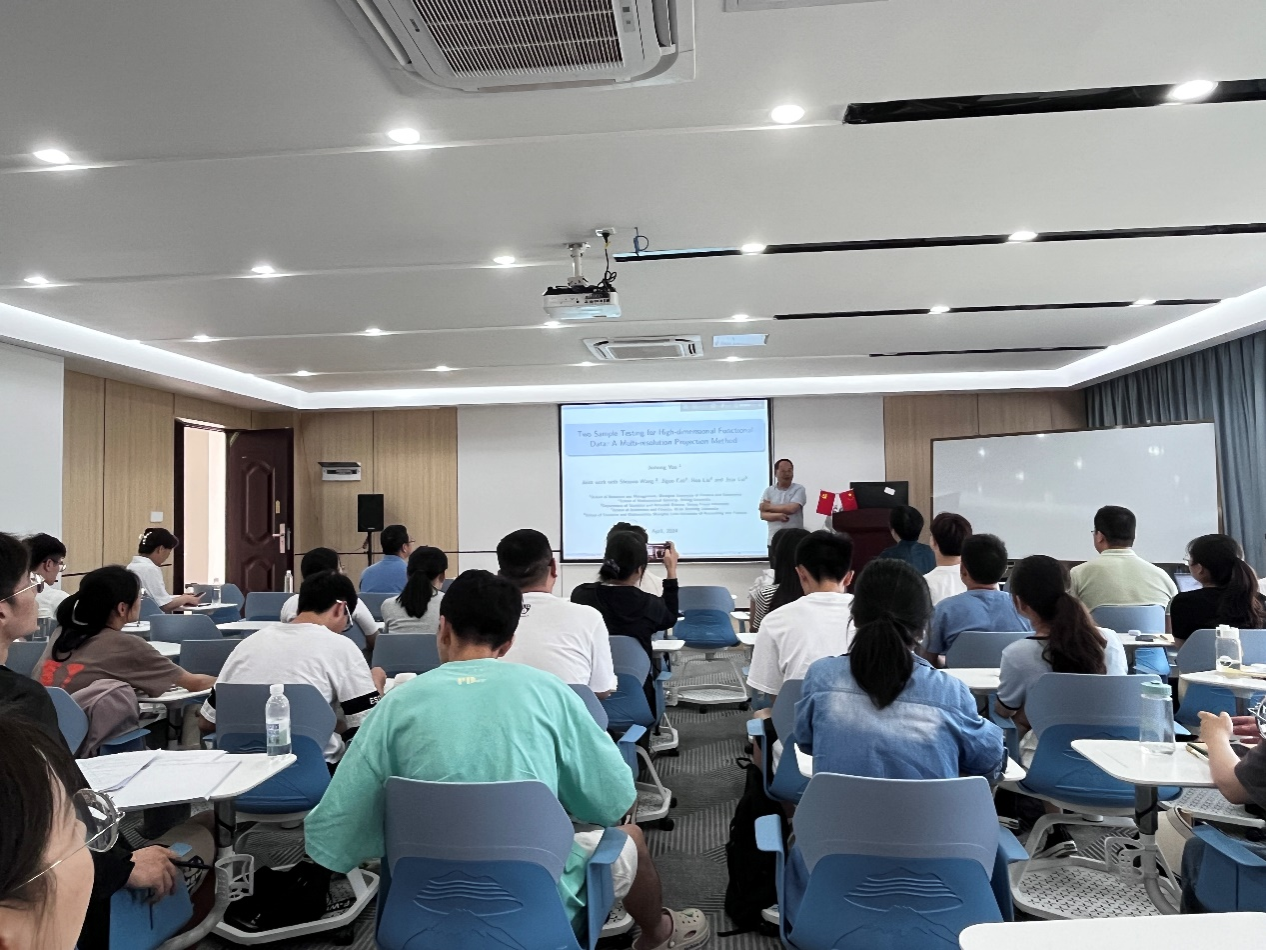 在报告中,吴贤毅教授讲述了人工智能和机器学习的起源和发展趋势,并通过ChatGPT等实际案例验证了人工智能和机器学习在实际生活中的应用。然后,尤进红教授从多分辨率投影的测试方法、渐近性质、功能重建的影响等几个方面介绍了团队最新的研究成果, 重点关注高维功能数据的双样本检验方法。