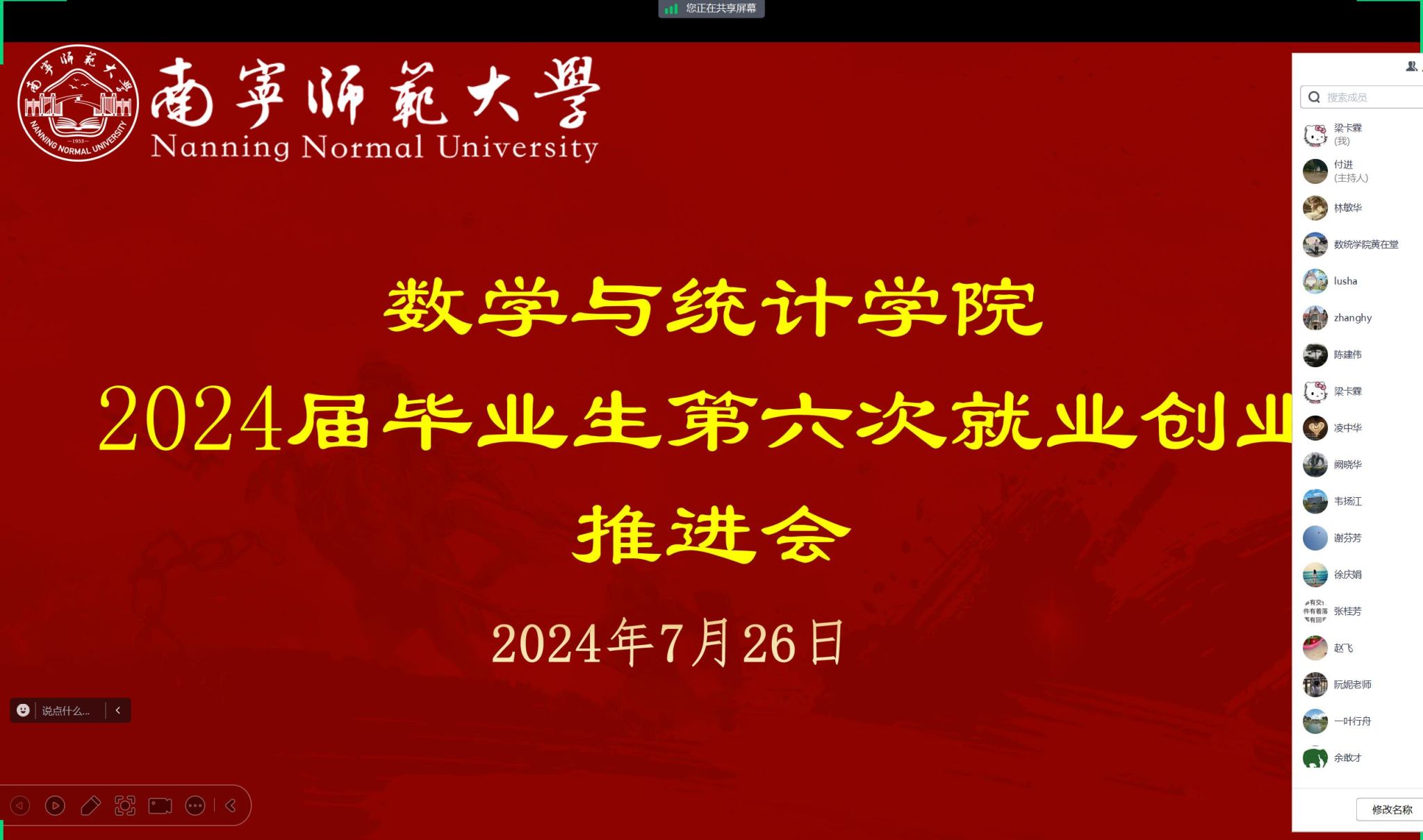 为扎实推进公司2024届毕业生就业创业工作,7月26日下午,williamhill在线上召开了2024届毕业生第六次就业创业推进会。该院领导班子、硕士生导师、本、专科毕业班的班主任和负责就业工作的辅导员参加此次会议,该公司党委付进副书记主持本次会议。