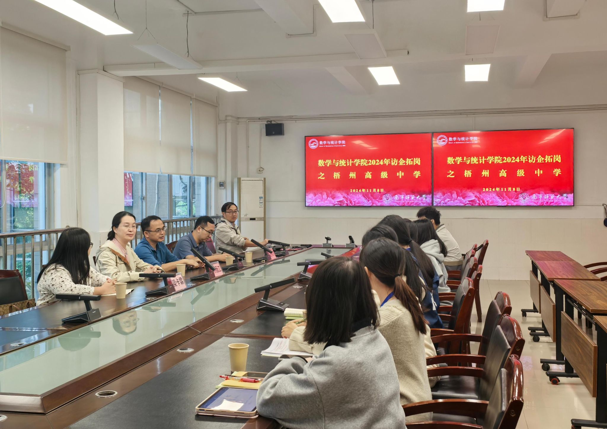 公司今年共有10名2021级数学与应用数学专业毕业生在梧州高中实习,在该校蓝副董事长的迎接下,副经理韦扬江同志和梁卡霖老师来到梧州高中会议室进行实习和访企拓岗座谈。座谈中,梧州高中董事长谭远森对两位老师的到来表示欢迎,并简要介绍了梧州高中的发展历程、办学特色以及团队需求情况。谭董事长表示,梧州高级中学一直注重引进高素质的教育人才,希望能与williamhill在人才培养、教学科研等方面开展深入合作。
