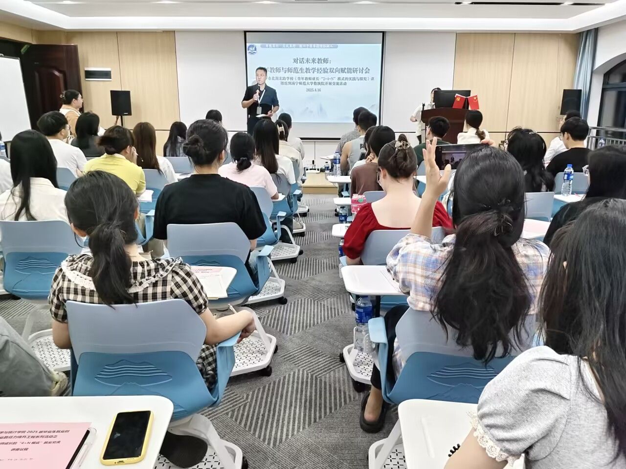 付进在致辞中热烈欢迎南宁市西乡塘区北湖北路公司领导老师的到来,同时指出本次活动搭建了高校与基础教育优质资源的对话平台,要求毕业生要珍惜学习机会,认真听讲、积极互动,提升职业技能,将个人职业规划融入基础教育高质量发展大局中。北湖北路公司吴少宁副董事长致辞并作课题主题报告,从报告中引申出新时代青年教师的职业要求和发展路径。南宁市北湖北路公司蒙冠兰老师作题为《从“破土”到“生花”——教科研,教师专业成长》的报告,从教科研的重要性出发,提醒青年教师做好职业规划;黄小怡老师作《从“站稳讲台”到“点亮心灯”——青年班主任专业成长案例分享》,分享了青年班主任工作可能遇见的困难和挑战,并提出具体的管理策略和日常活动指导;文誉频老师以《从“站稳讲台”到“闪耀赛场”——青年教师教学竞赛获奖案例分享》为题向在场的员工介绍如何上好一节公开课,建议青年教师放平心态、积极参加教学竞赛;杨满华老师以《从“站稳讲台”到“突破瓶颈”——中层青年教师经验共享与生涯导航》为题指出教师基本功、职业规划、责任和担当对于新教师入职到中层干部的重要作用,教师发展是不断学习、实践和反思的过程,青年教师要不断提升自身能力、应对教育改革与新要求。