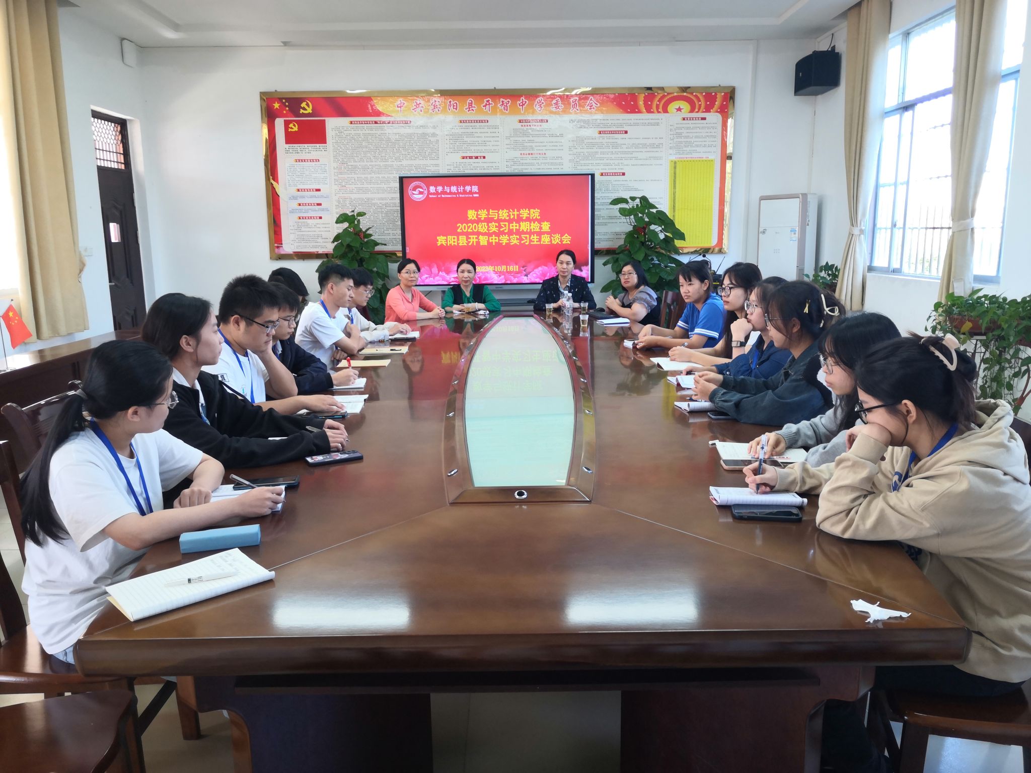 2023年10月16日,williamhill韦扬江副经理带队前往宾阳县开智中学进行2020级实习工作中期检查。
